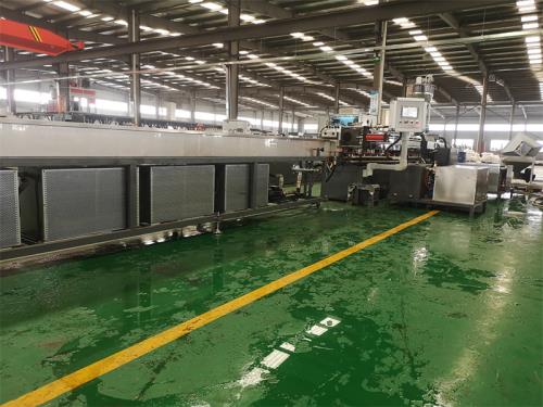加寬加深,槽體為不銹鋼材質(zhì);水槽與吸干機(jī)過度體一件;不銹鋼材質(zhì),水槽熱水經(jīng)過濾器到環(huán)保型冷卻器;水槽架里安裝:4組環(huán)保風(fēng)冷卻系統(tǒng)(環(huán)保型:發(fā)明專利號:2020107265672)不需要接外循環(huán)水冷卻,不用徘外水;采用閉環(huán)循環(huán)系統(tǒng);工程塑料造粒代加工2)龍門切粒機(jī):壹臺,功率3kw,變頻調(diào)速;切粒機(jī)動刀刀口采用鎢鋼材質(zhì)3)加長振動篩:一臺,L=2.5m,電機(jī)采用:震動專用電機(jī);震動量可以調(diào)節(jié)大小:電機(jī)功率:0.55KW兩臺;振動篩篩網(wǎng)采用三層分離物料;大孔直徑φ8mm,小孔直徑φ2.5mm,不銹鋼材質(zhì),振動篩出廠時(shí);振動量調(diào)節(jié)到最小;4)風(fēng)吹料倉:一套,1m3料倉一件,不銹鋼材質(zhì);采用φ130mm不銹鋼管聯(lián)接;4kw物料輸送風(fēng)機(jī)。內(nèi)飾片材擠出生產(chǎn)線 http://ramadashanghai.com/contents/134/37.html