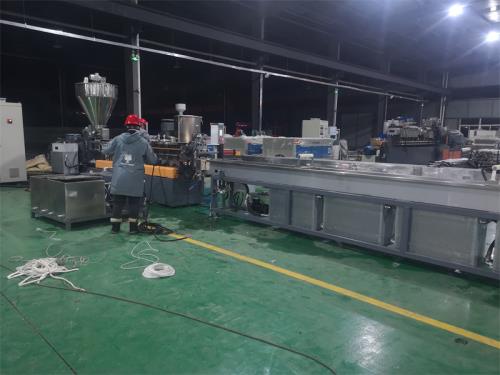 工程塑料造粒代加工_工程塑料造粒代加工_佳德塑機(jī)JDL-65B雙螺桿水拉條機(jī)組一、系統(tǒng)機(jī)組技術(shù)參數(shù)Ⅰ、機(jī)器顏色:主機(jī)為公司標(biāo)色;電柜為電腦色Ⅱ、造粒工藝:雙螺桿計(jì)量式喂料——-JDL-65B雙螺桿擠出機(jī)---—液壓板式換網(wǎng)——拉條機(jī)頭----6米不銹鋼水槽-----吹干機(jī)----龍門切粒機(jī)-----2.5米加長振動篩-----風(fēng)冷成品料倉-----主機(jī)采用:PLC控制Ⅲ、作業(yè)物料:PE PP 破碎料產(chǎn) 量:200-250公斤/小時(shí)(作業(yè)條件不同,產(chǎn)量稍有不同)設(shè)備特點(diǎn):整套設(shè)備是環(huán)保型,設(shè)備不需要接外循環(huán)水系統(tǒng);自帶循環(huán)冷卻統(tǒng)是我公司專利產(chǎn)品(發(fā)明專利號:CN201911312134.6)1.最大好處:整套0水排放;無水污染;環(huán)保好過2.雙螺桿齒輪箱冷卻采用:采用環(huán)保冷卻系統(tǒng)(環(huán)保型:發(fā)明專利號:CN201911312134.6)不需要接外循環(huán)水冷卻,工程塑料造粒代加工不用徘外水;采用閉環(huán)循環(huán)系統(tǒng),不用擔(dān)心長時(shí)間使用水冷卻會產(chǎn)生水垢把冷卻器堵住,導(dǎo)致齒輪箱損壞3.雙螺桿主機(jī)水箱冷卻系統(tǒng)采用:采用環(huán)保冷卻系統(tǒng)(環(huán)保型:發(fā)明專利號:CN201911312134.6)不需要接外循環(huán)水冷卻,不用徘外水;采用閉環(huán)循環(huán)系統(tǒng)4. 不銹鋼水槽:一臺,L=6米,加寬加深,槽體為不銹鋼材質(zhì);水槽與吸干機(jī)過度體一件;不銹鋼材質(zhì),水槽熱水經(jīng)過濾器到環(huán)保型冷卻器;水槽架里安裝:4組環(huán)保風(fēng)冷卻系統(tǒng)(環(huán)保型:發(fā)明專利號:2020107265672)不需要接外循環(huán)水冷卻,不用徘外水;采用閉環(huán)循環(huán)系統(tǒng);工程塑料造粒代加工5.節(jié)能:普通筒體筒體冷卻;例如:第5區(qū)溫度超高;這是電子閥導(dǎo)通;第5區(qū)冷卻回水就會影響第六區(qū)和第四區(qū)的溫度下降;就會導(dǎo)致第四六區(qū)加溫;這種情況會一直循環(huán)出現(xiàn);導(dǎo)致電費(fèi)浪費(fèi);我們現(xiàn)在采用環(huán)保型就徹底解決這個(gè)問題;我們設(shè)備比同類設(shè)備節(jié)能:10-15%電費(fèi)6.減少投資款:3米*3米*2.5米冷卻水池;60立方冷卻水塔及4KW高壓水泵2臺及管道,10天施工費(fèi)用:能減少固定投資大概:12萬元左右工程塑料造粒代加工