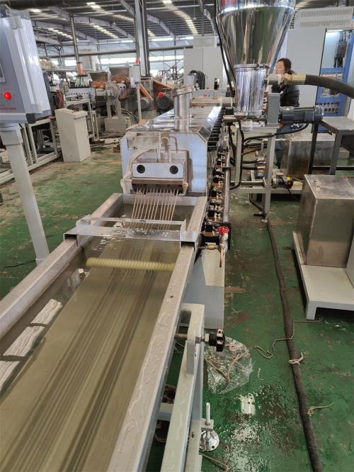雙螺桿造粒機(jī)_雙螺桿造粒機(jī)_省電15%JDL-75D雙螺桿水拉條機(jī)組一、系統(tǒng)機(jī)組技術(shù)參數(shù)Ⅰ、機(jī)器顏色:主機(jī)為公司標(biāo)色;電柜為電腦色Ⅱ、造粒工藝:雙螺桿計(jì)量式喂料——-JDL-75D雙螺桿擠出機(jī)---—液壓板式換網(wǎng)——拉條機(jī)頭----6米不銹鋼水槽-----2臺(tái)吹干機(jī)----龍門切粒機(jī)----2.5米不銹鋼振動(dòng)篩-----一級(jí)旋風(fēng)分離器-------成品料倉----主機(jī)采用:PLC控制Ⅲ、作業(yè)物料:TPE草坪填充顆粒 雙螺桿造粒機(jī)產(chǎn) 量:500-600公斤/小時(shí)(作業(yè)條件不同,產(chǎn)量稍有不同)客戶為何購買我們?cè)O(shè)備,我們價(jià)位在行業(yè)屬于中低價(jià)格,我們?cè)O(shè)備能給客戶帶來哪里利益,我們?cè)O(shè)備能給用戶帶來以下利益: